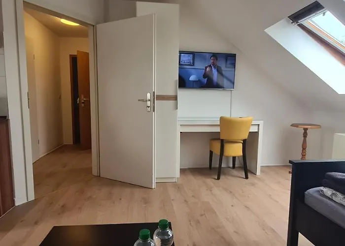 Consisting of a seating area, this apartment is fitted with a sofa set and a writing desk, as well as modern amenities like a multi-channel television. For your comfort, you will find a separate toilet and a bath at Ganze 2 Raum Ferienwohnung Rechts. Towels are also included in the bathroom.